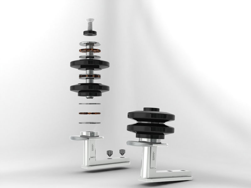 - Horizontalfahrwerk mit dreifachen Edelstahlkugellagern und kohlefaserverstärkten Polyamidrädern