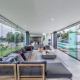 Showcase the beauty of your home: The exquisite design of a glass door adds a simplistically contemporary touch to your space, enabling you to showcase specific designs or areas within your home, such as the stunning English backyard garden or your waterfall swimming pool with a jacuzzi hot tub.